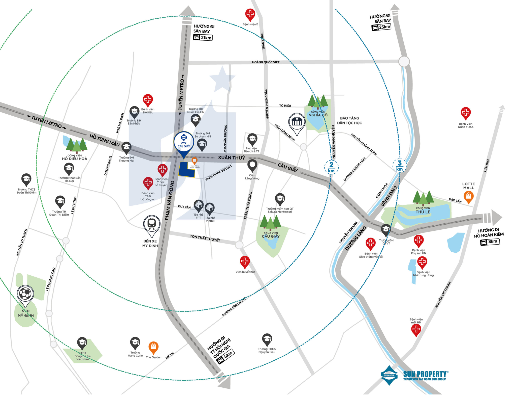 Tổ hợp căn hộ Sun Feliza Suites tọa lạc tại giao điểm của những trục đường chiến lược bậc nhất thủ đô: Phạm Hùng – Xuân Thủy – Hồ Tùng Mậu. Nơi đây không chỉ là “giao lộ Hoàng Kim” mà còn là tâm điểm hội tụ dòng cư dân trí thức, chuyên gia và cộng đồng tinh hoa, thành đạt.