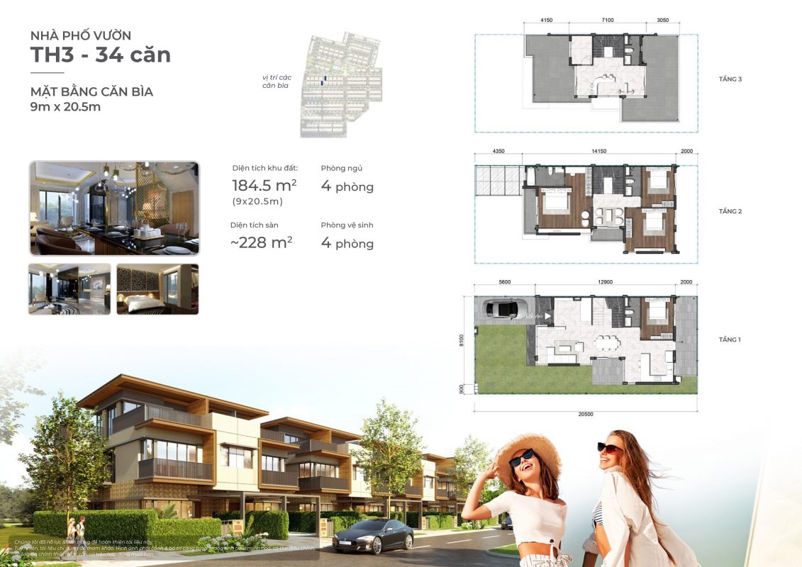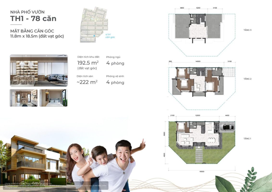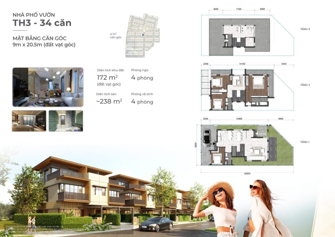 • Nhà phố TH3 Căn Góc: 172 m2 đất, 238 m2 sàn XD, 3 tầng.