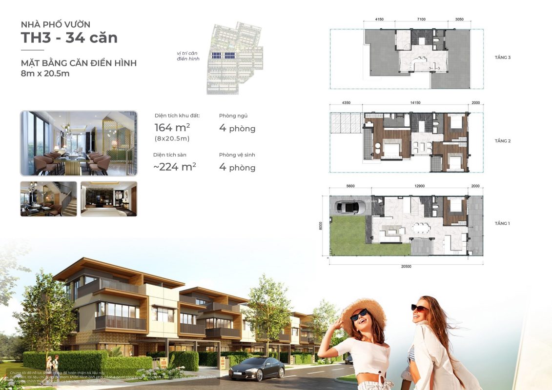 • Nhà phố TH3 Điển Hình: 164m2 đất, 224 m2 sàn XD, 3 tầng.