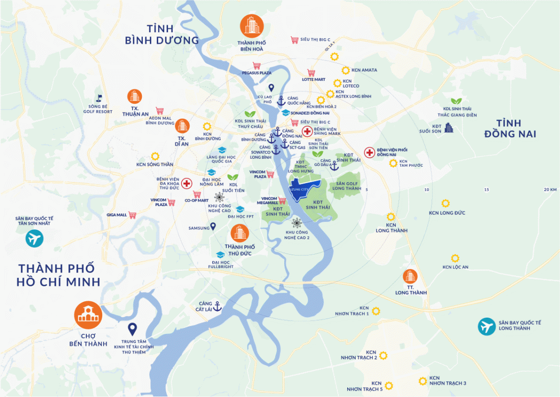 Tọa lại nơi tâm điểm với các mặt tiếp giáp sông Đồng Nai thanh mát, đại lộ thương mại sầm uất và tổ hợp tiện ích đô thị trung tâm, Izumi City Giai đoạn 1 là sự giao thoa hoàn mỹ giữa tinh hoa sông nước tự nhiên, trải nghiệm sống xanh hiện đại cùng nhip đô thị đầy năng lượng.