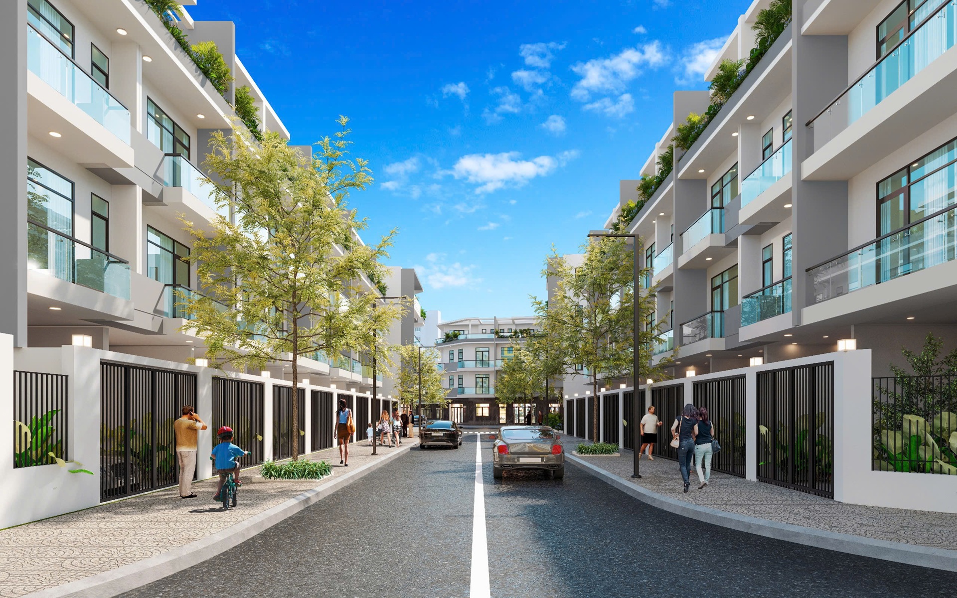Dự án bao gồm 152 căn nhà phố thương mại thiết kế đồng bộ với kết cấu 1 trệt + 2 lầu + 1 tum, diện tích đa dạng từ 60m2, được bố trí khoa học nhằm tối ưu hóa công năng sử dụng.