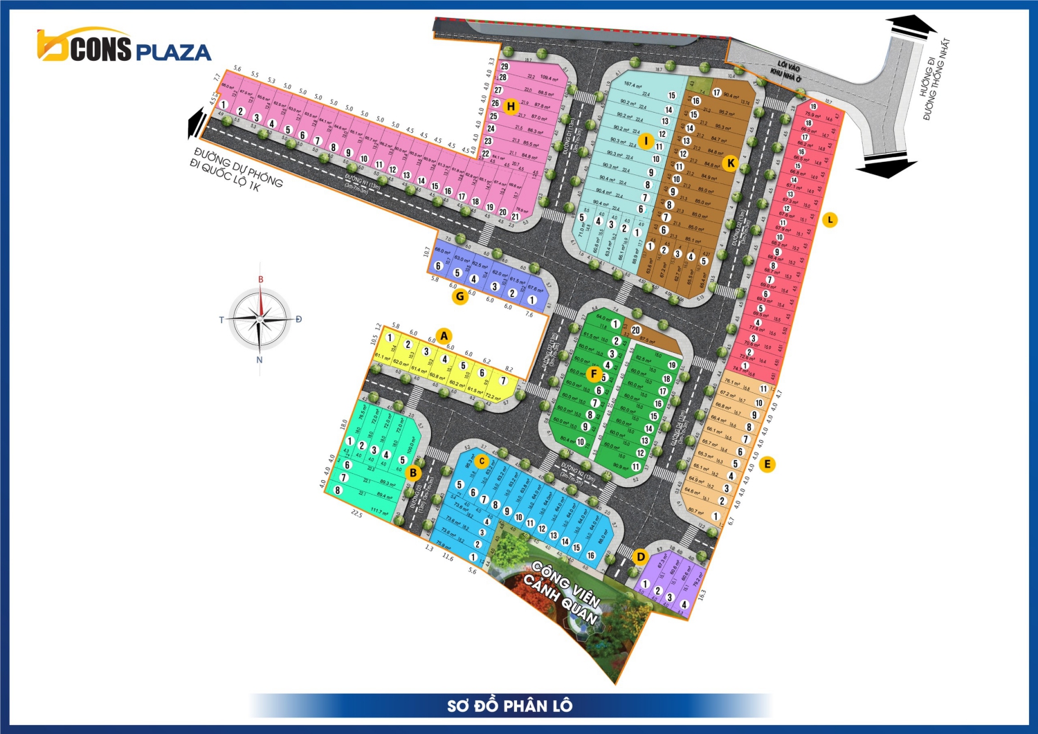 Mặt bằng phân lô nhà phố Bcons Uni Valley.